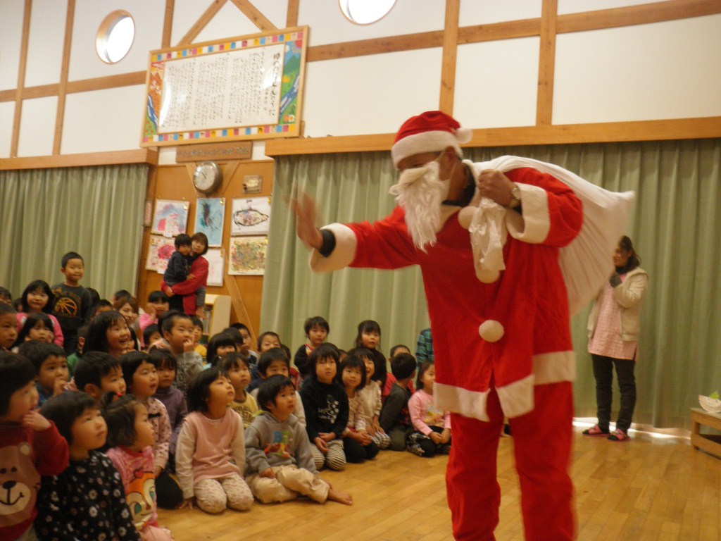 サンタになって、掛合保育所を訪問しました