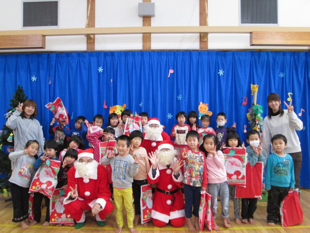 ライオンズ会員3名は赤い衣装に白ひげをたくわえたサンタ姿で園児の前に現れた。 園児のクリスマスソングに迎えられ、「サンタはどこからくるの」などの質問に答えた。「みんながいいことをしているか見にきた。いい子になってね」と伝え、一人一人に保育所が用意したプレゼントを手渡し、来年も来ることを約束し帰りました。